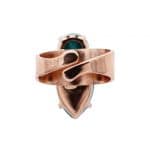 La bague BELMA, ici portée par Agnès, est une interprétation du minimalisme bohémien. Elle est sertie d’un double cristal émaillé et pailleté bleu aqua central dans une composition épurée. Sa forme classique est empreinte d’une touche de romantisme. Elle se porte seule ou en accumulation pour habiller la main de jour comme de nuit.