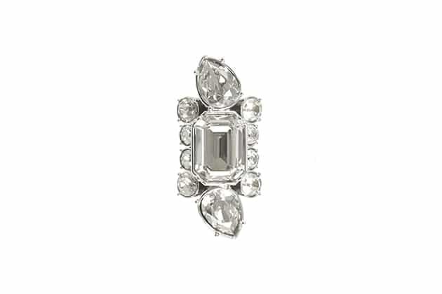 La bague VICTORIA en métal rhodié et cristal blanc, ici portée par Betty, impose sa forme majestueuse en l’honneur de la Reine Victoria qui fut reine du Royaume de Grande-Bretagne, d’Irlande, du Canada et impératrice des Indes. À l’image de cette femme de pouvoir, cette bague à la forme classique se distingue par des cristaux XXL qui apportent une modernité pouvant s’adapter à tous les styles.