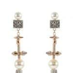 Les boucles d’oreilles ANAELLE, ici portées par Maeva Coucke, se caractérisent par leur look sophistiqué et unique. Des perles de couleur crème, associées à plusieurs formes géométriques métalliques plaquées or 18 carats pavées de cristaux blancs sont liées par une petite chaîne. Elles forment un ensemble délicat et singulier qui se balance à chaque mouvement.