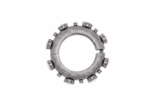 Le bracelet jonc ASHIL, ici porté par Christine, fait partie de la collection PIÈCES UNIQUES. Réalisé en métal argenté vieilli et encerclé de cristaux blancs, ce bijou design apporte un style glamour. Non réglable, il enserre le poignet tout en le sublimant.