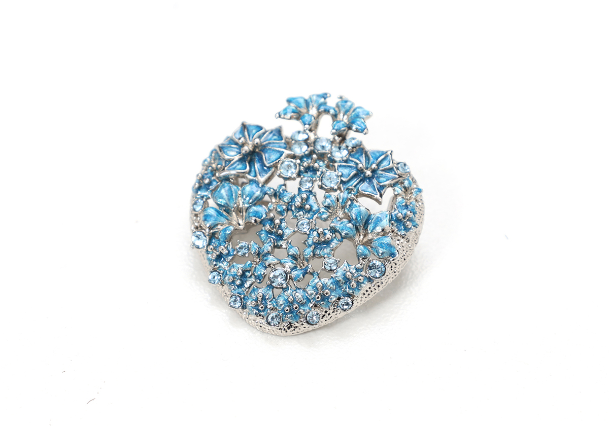 La Broche Cœur Blue Zeal Vein, en émail et cristaux, exprime une originalité magnétique. Déployée dans des nuances de bleu métallisé aux reflets irisés, elle s’articule autour de fleurs de datura délicatement entrelacées, invitant à une émotion libre et infinie.