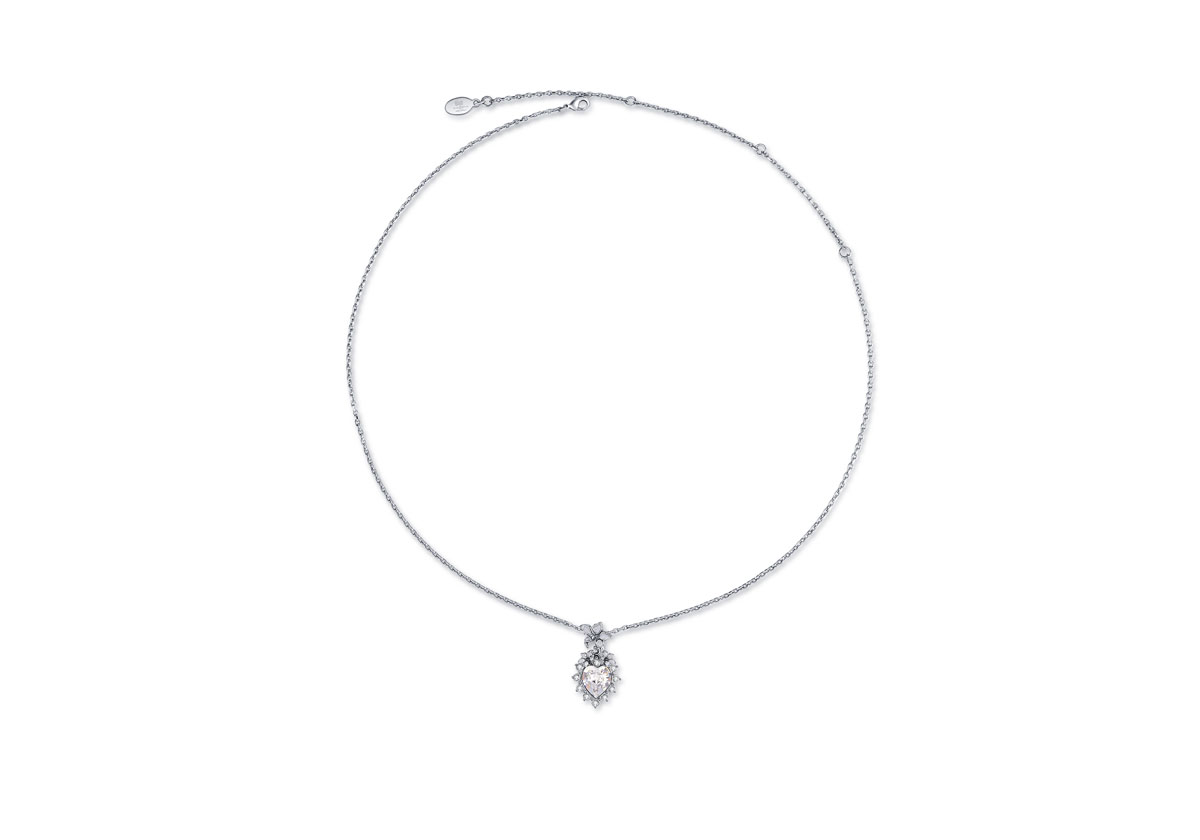 Décliné dans des nuances de blanc métallisé aux irisations subtiles, le pendentif compose un motif floral entrelacé évoquant une émotion libre et infinie. Issu de la Mandala Series.