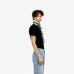 L’écharpe BOLA, ici portée par Ulysse, fait référence au labyrinthe de dédales pour une ballade dans l’histoire des dieux grecs, au travers des timbres anciens. La griffe « Paris Paros » est un clin d’œil à l’unique boutique On Aura Tout Vu, nichée au cœur de Naoussa, le célèbre village cycladique de Paros. Réalisé en rayonne, cette écharpe offre douceur et confort.
